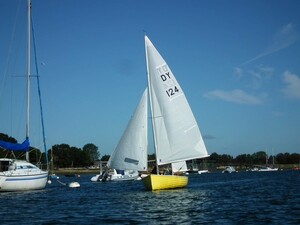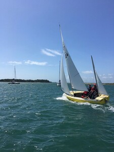 Distinctive yellow hull boat that has raced in Chichester Harbour out of Bosham Sailing Club every year without missing a beat since 2016.